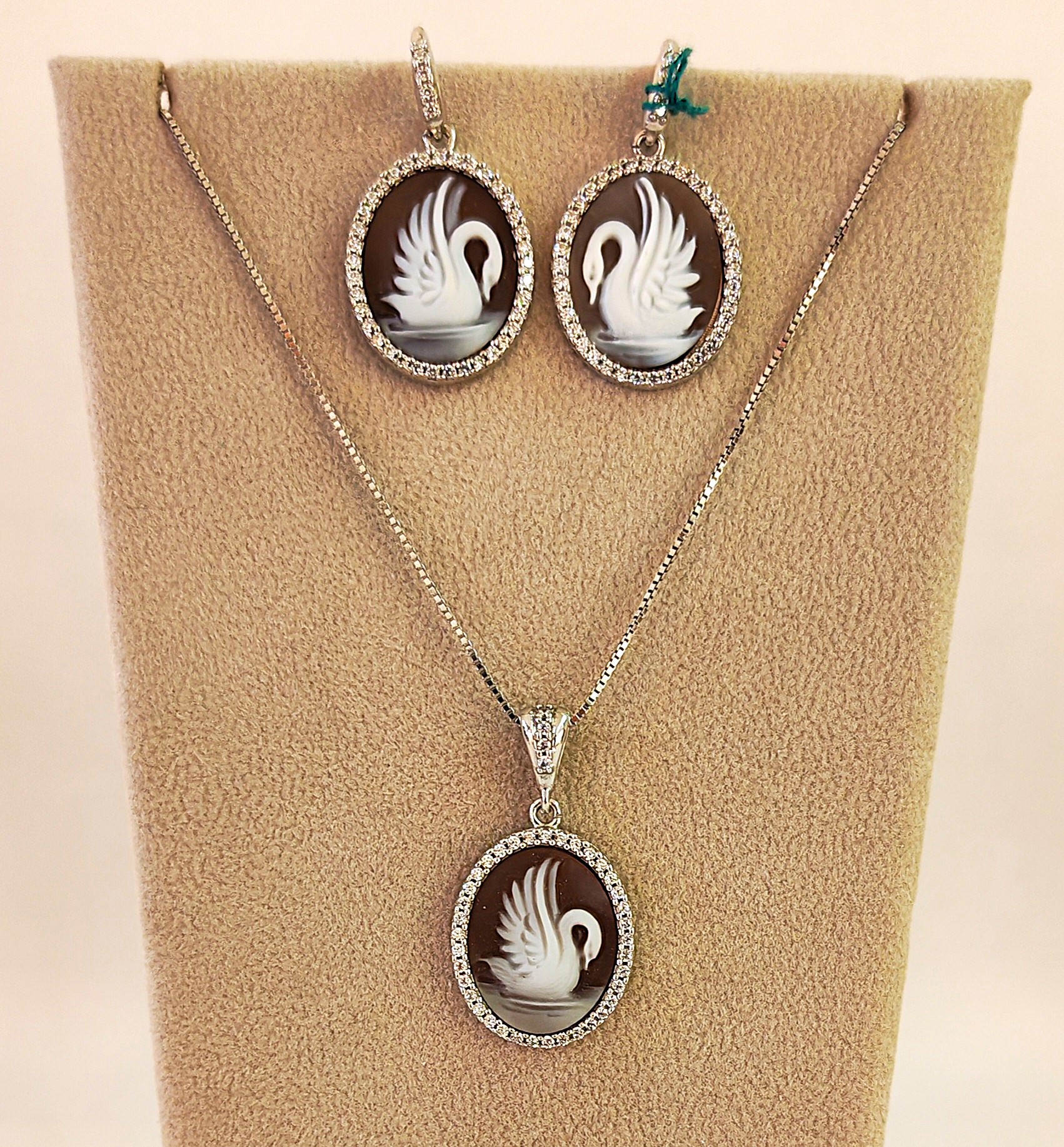 Montatura argento con zirconi – ciondolo cm 1,5 x 2 e orecchini a buco cm 1,5 x 2 – non vendibili separatamente