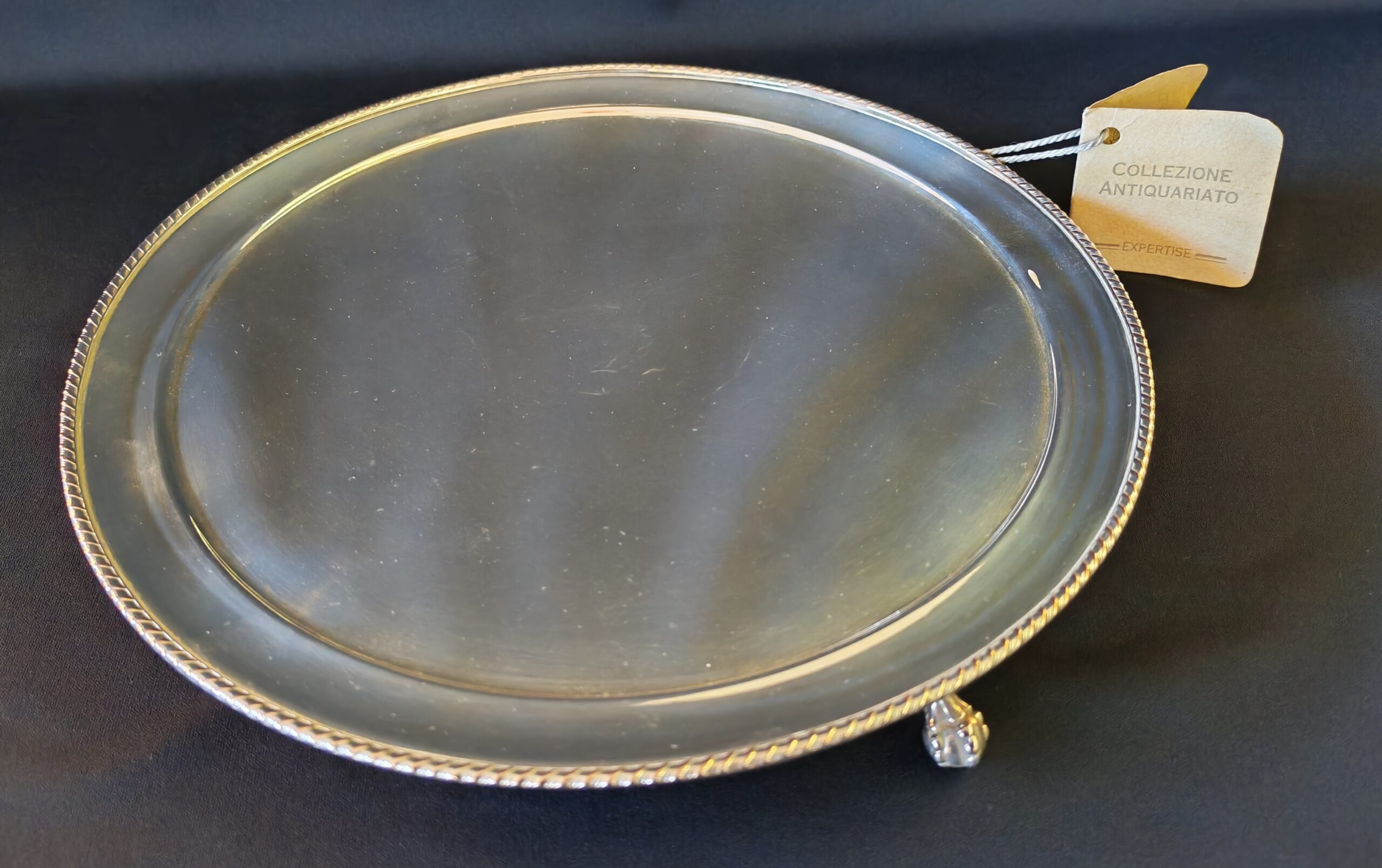 Vassoio Old Sheffield inglese – diametro cm 25 con 3 piedini – originale inglese epoca seconda metà ‘800 come da expertise