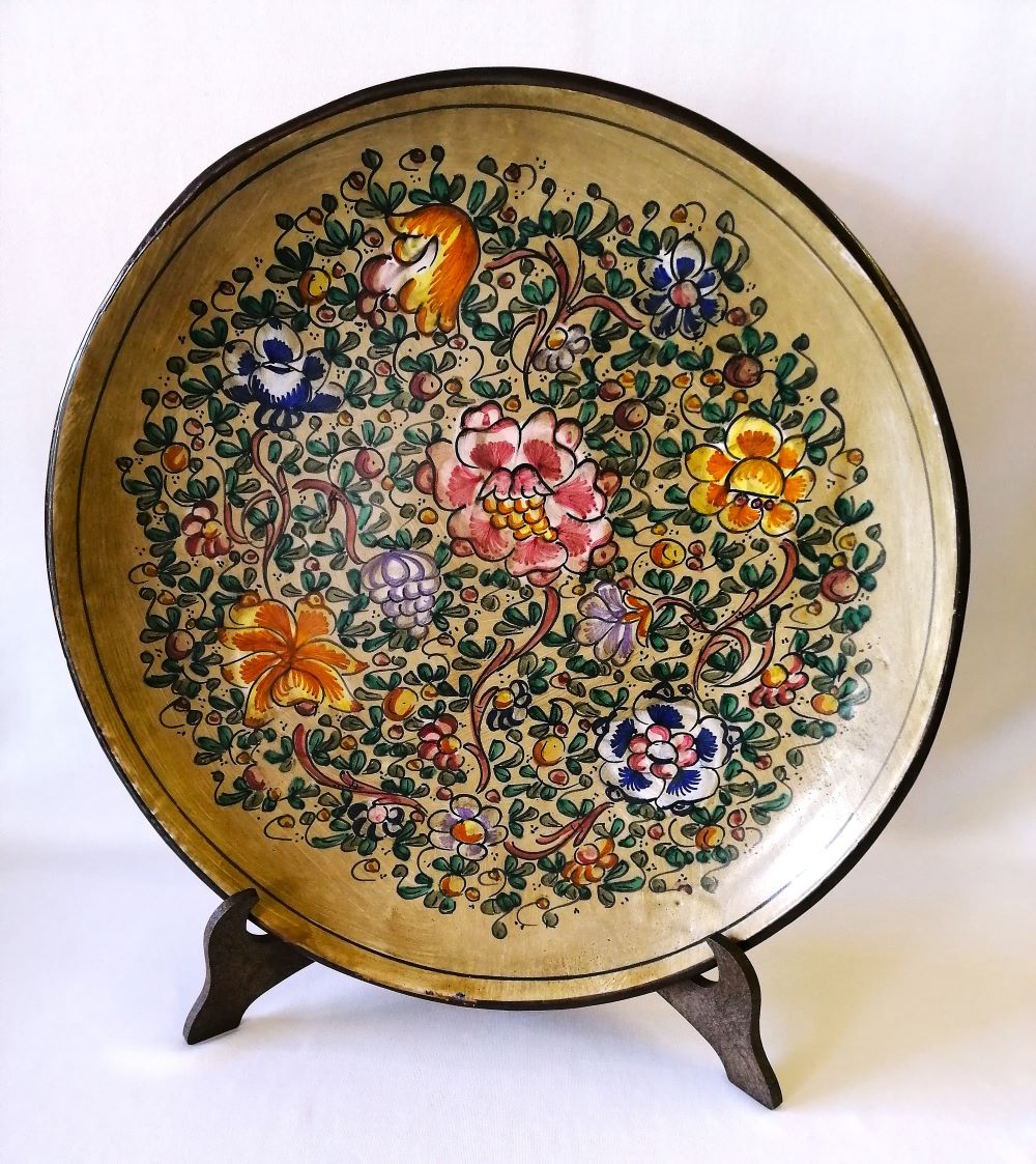Prodotto negli anni ’30 – Dipinto a mano su terra di Siena – Ultimo pezzo – cm 35 diametro