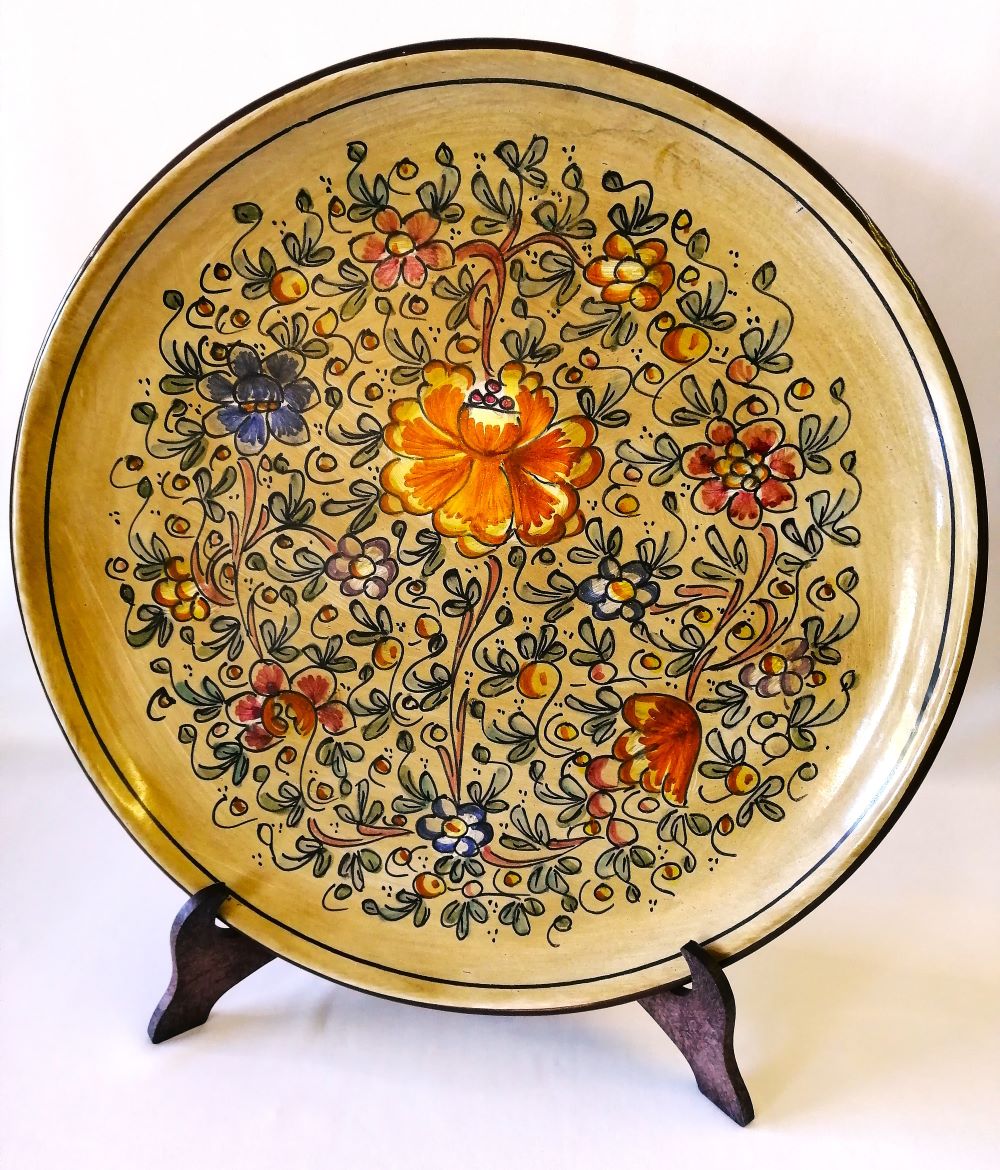 Prodotto negli anni ’30 – Dipinto a mano su terra di Siena – Ultimo pezzo – cm 35 diametro